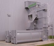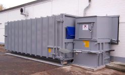 Die kompakte Ausführung der Schneckenpresse nimmt nur ein Minimum an Stellfläche ein und kann durch unterschiedliche Beschickungsvarianten wie Hub-Kippvorrichtung, Wandanschlusstrichter oder sonstigen Trichterlösungen individuell an die Bedürfnisse des Kunden angepasst werden.